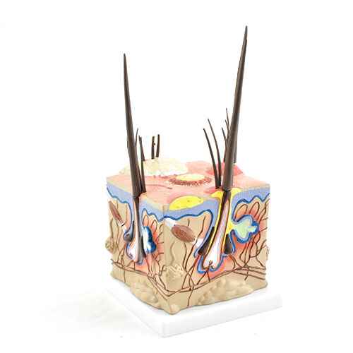 The canine skin model comes with three, long attachable hairs mounted on a white plastic base for better observation.