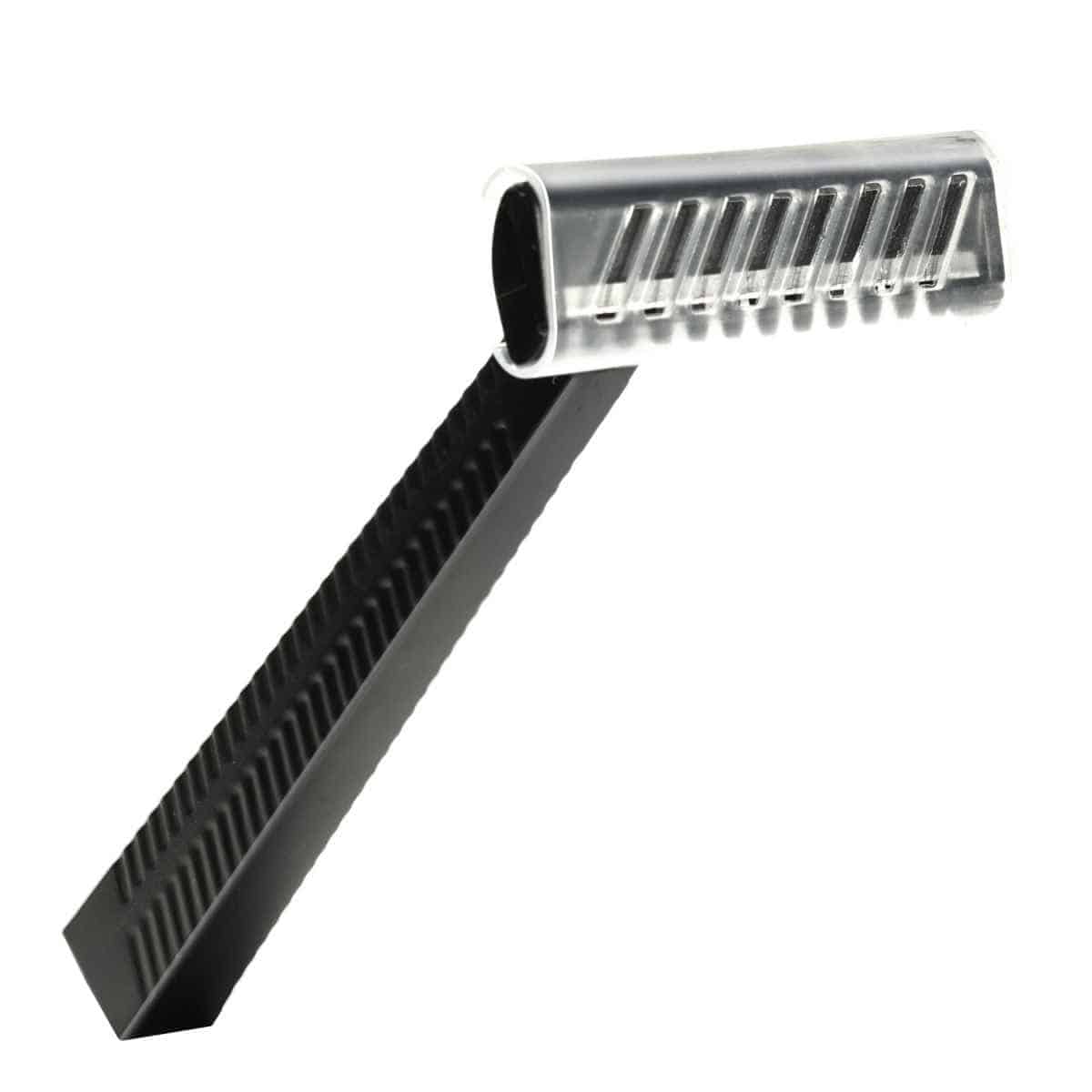 These single-use wet-shave razors by Nitras are fitted with a sharp blade and a transparent protective cover. They are suitable e.g. for preparing for surgery or performing an ECG. The black disposable razors are supplied in a practical dispenser box of 100 pcs.