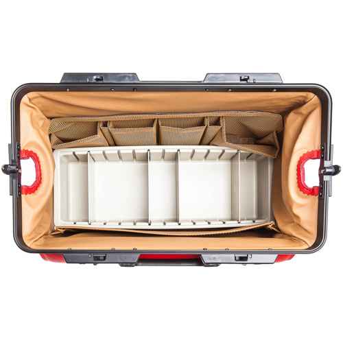 Large internal compartment with removable base liners with variable compartment dividers (plastic slot system)