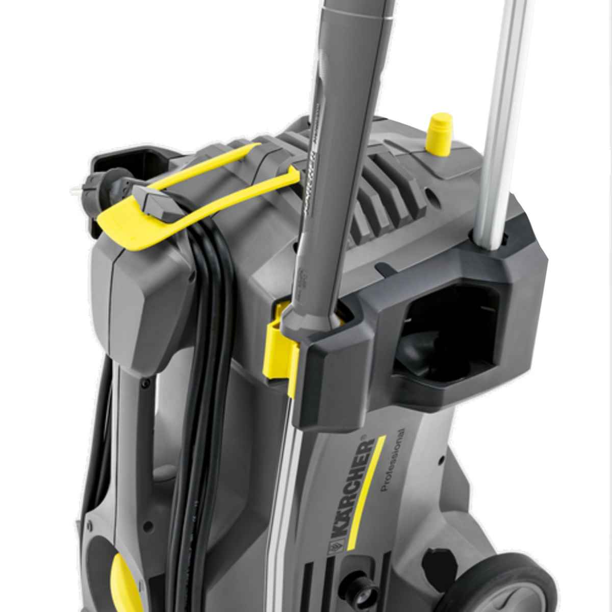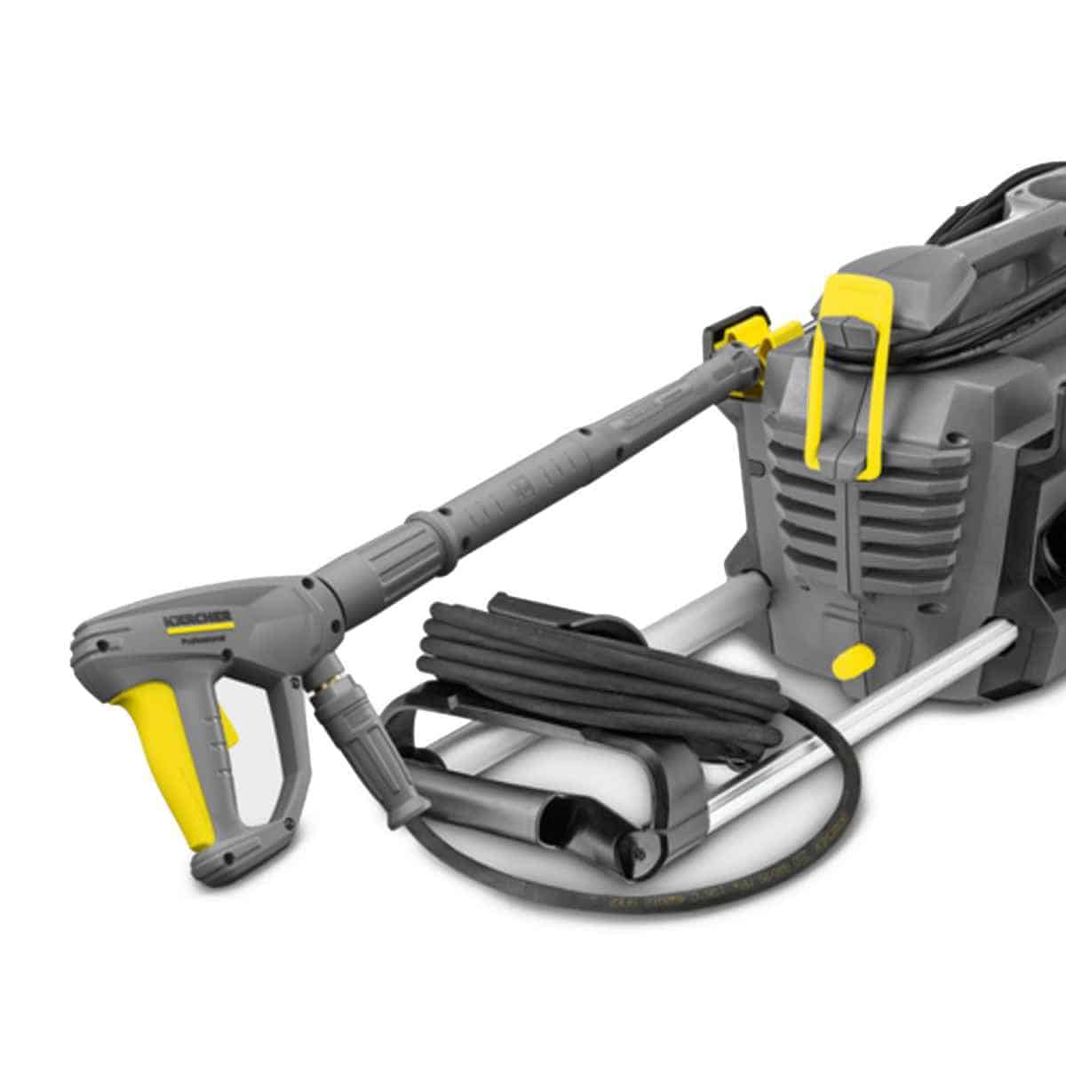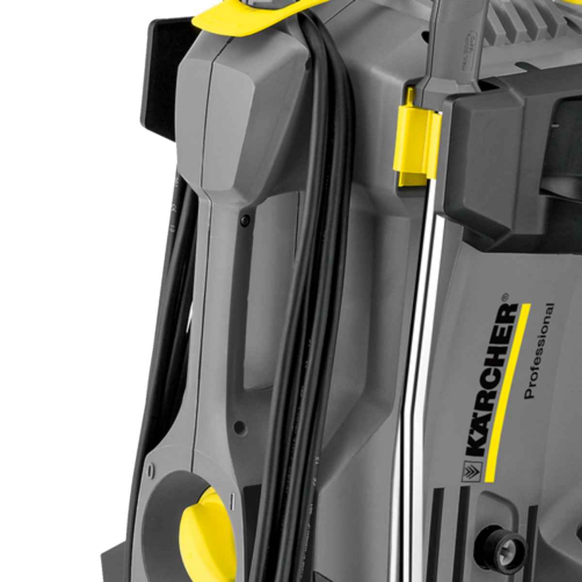 The compact and mobile KÄRCHER HD 5/11 P Plus cold water high-pressure cleaner is designed for both horizontal and vertical operation and therefore offers its users a high degree of operational flexibility. Thanks to the Dirt Blaster spray lance included in the scope of delivery and a flushing effect of around 490 l/h, the unit removes even stubborn dirt and enables fatigue-free operation with the ergonomic EASY!Force high-pressure gun, which uses the recoil force of the high-pressure jet to reduce the holding force.