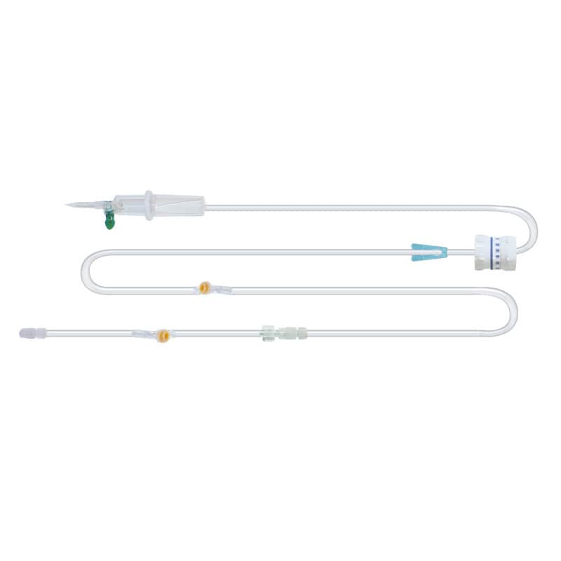 Luer-Lock connection point in tube (5 cm from the first injection port) allows for disconnecting the infusion