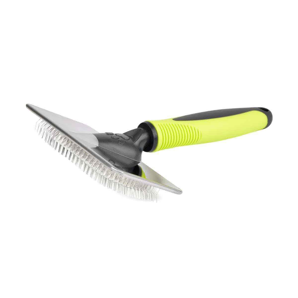 The rubberised, ribbed and ergonomically shaped handle lies particularly well in the hand and also has an eyelet for hanging the brush. The professional-quality dog brush has a bristle surface of 9.2 x 2.9 cm. These metal bristles are approximately 15 mm long.