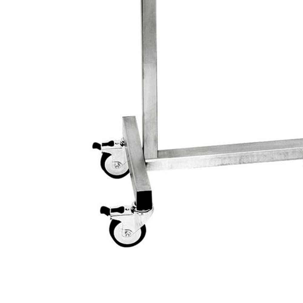 This instrument table is made of polished stainless steel, making it particularly easy to clean and disinfect. An upstand prevents instruments from rolling down. The stainless steel instrument table can be easily adjusted in height.