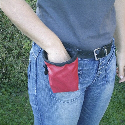 When out on long walks or in a veterinary practice, the wearer of the treat bag always has fresh treats on hand, which eliminates the need to carry them in their pockets.