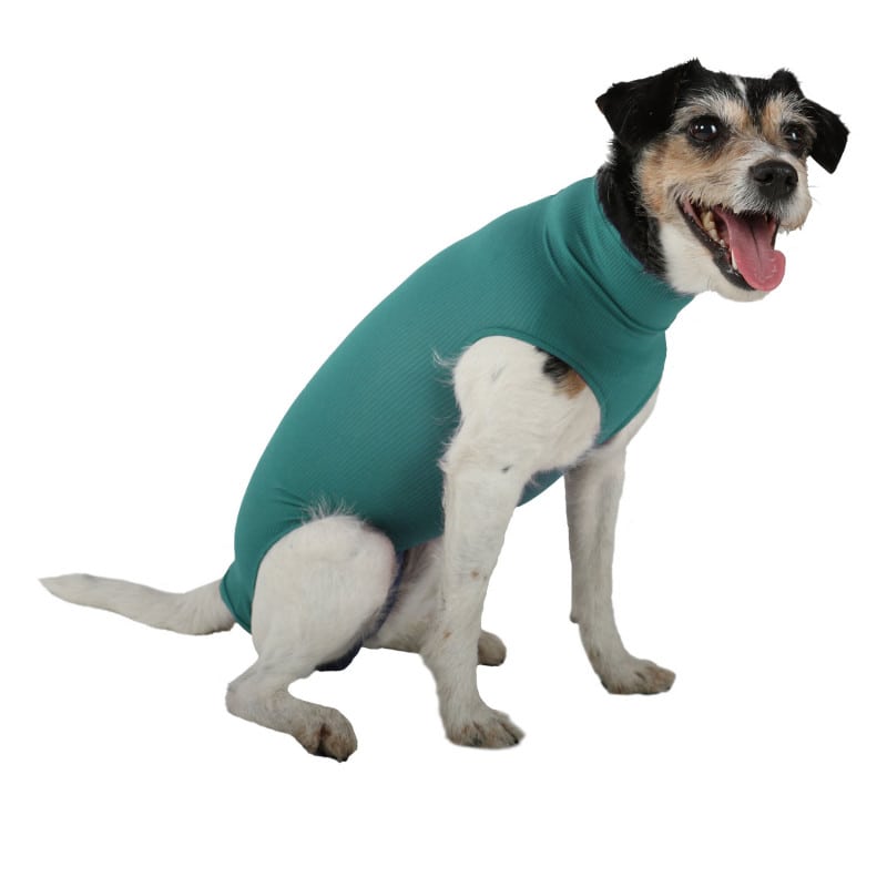 The extremely elastic and breathable wound protection bodysuits for dogs from VetMedCare are suitable as a comfortable alternative to the elizabethan collar. The bodies not only protect wounds from dirt, gnawing, licking, or scratching, but can also be used to protect the skin from autumn grass mites or ticks. Thanks to the many different sizes, the wound protection bodysuits fit every dog perfectly.